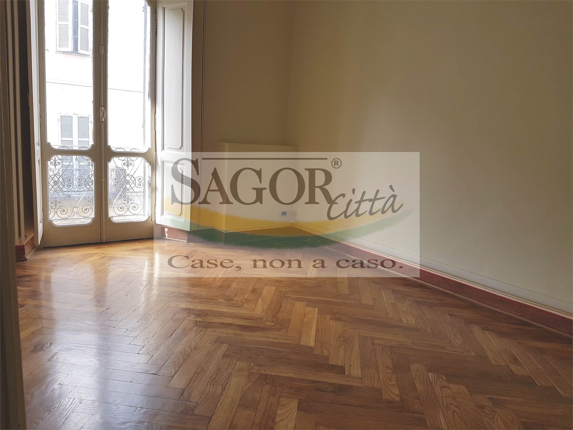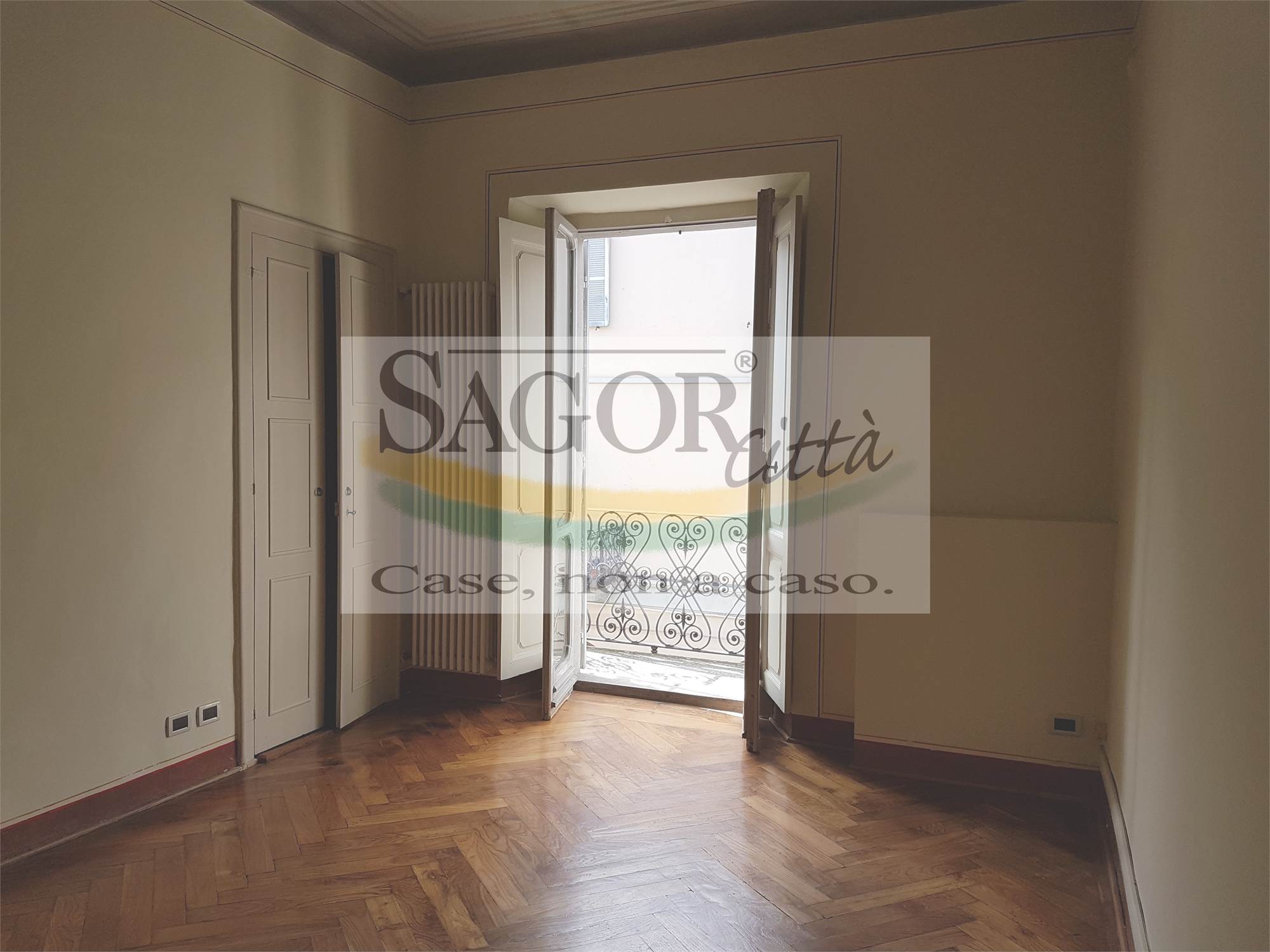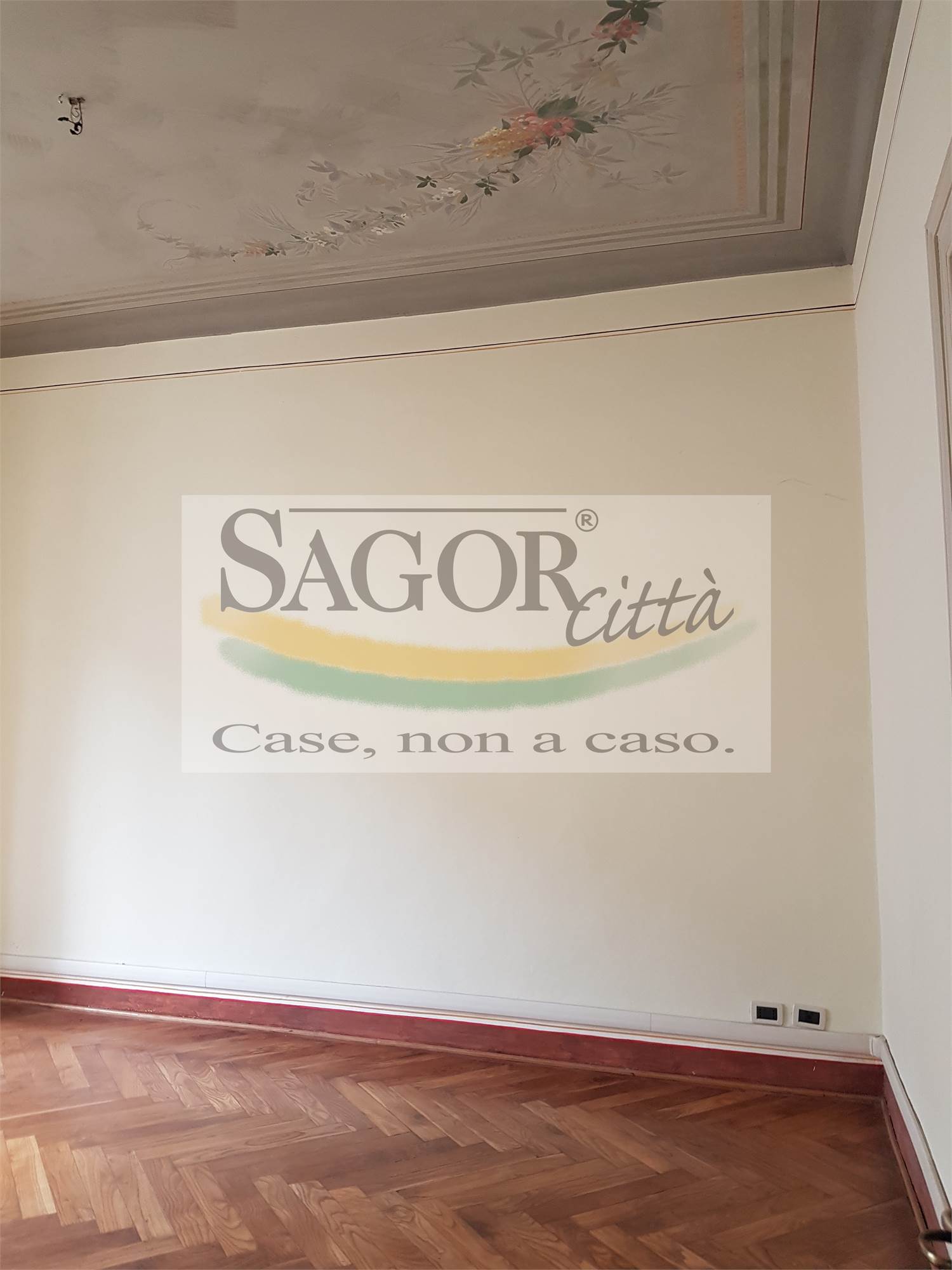 In elegante stabile d'epoca, in zona centralissima, appartamento signorile con particolarità d'epoca e parquet originali, composto da ingresso living su soggiorno con zona cucina, camera da letto, studio passante, bagno con antibagno e due balconi., possibilita' di avere una terza camera .