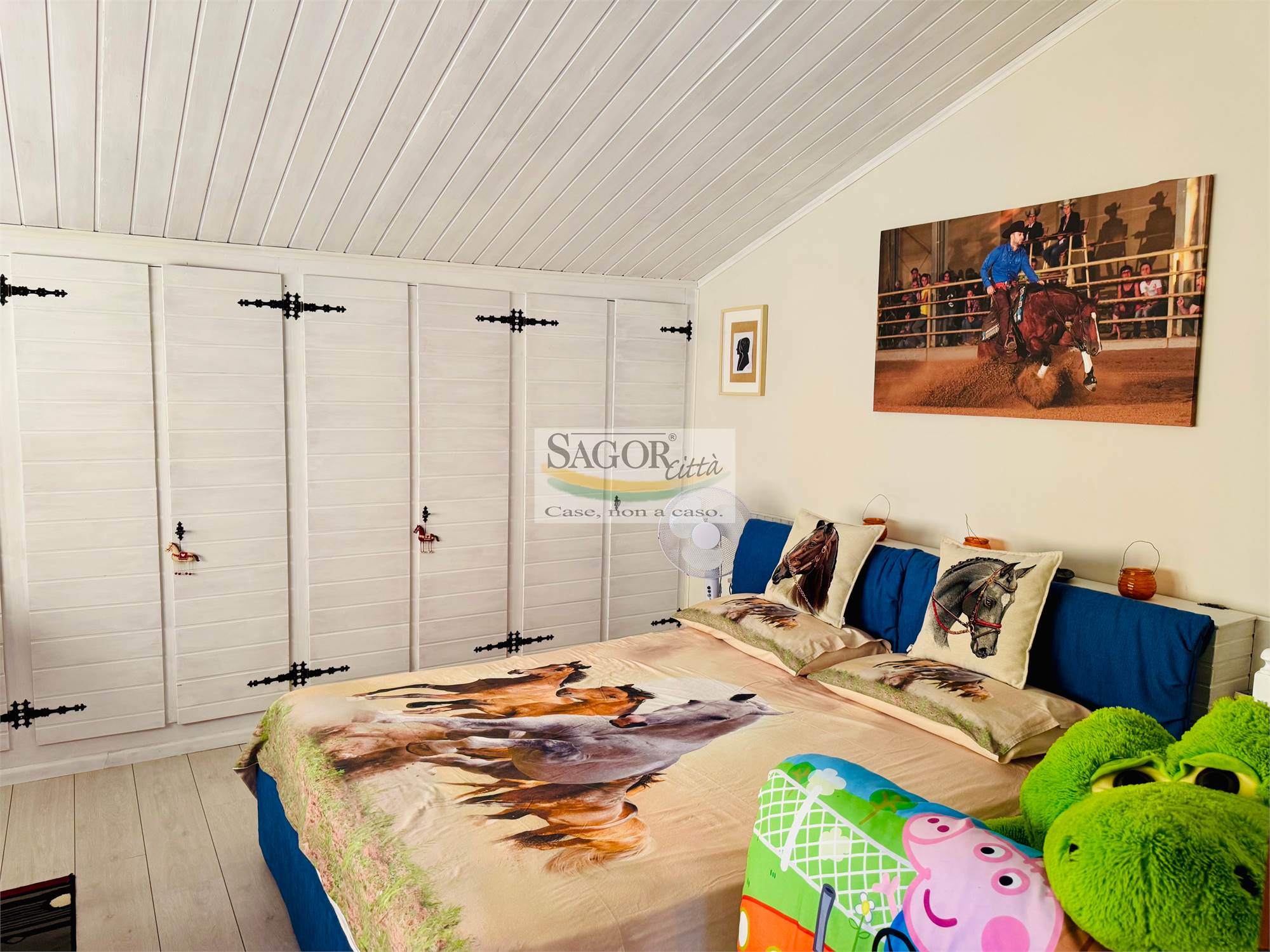 In villa bifamiliare affitasi a non residenti, appartamento mansardato e arredato dí ampia metratura corredato di due terrazzi panoramici e coperti e un posto auto.