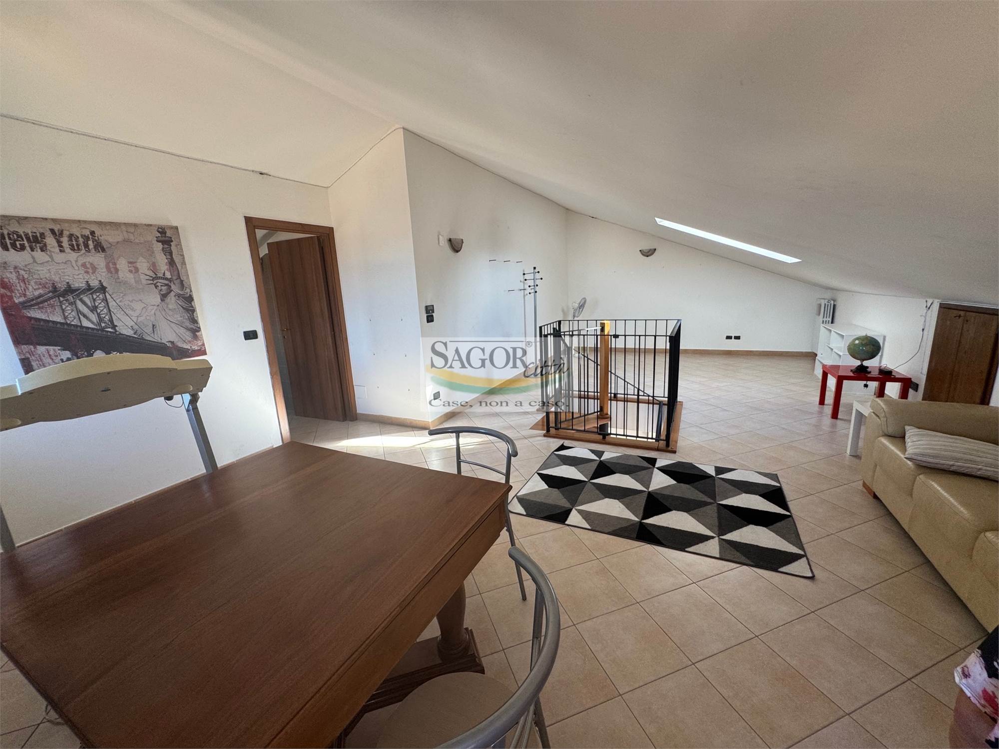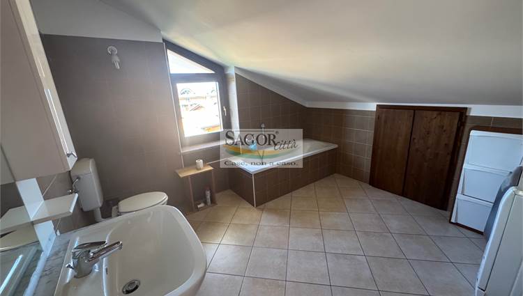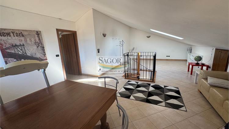 In palazzina del 2005 ubicata in centro paese , comoda a tutti i servizi, di sole sei unita' abitative, si propone in esclusiva, appartamento composto da ingresso living su salone , cucina, entrambi i vani con affaccio sul bel terrazzino panoramico, due camere da letto, una con terrazzino e bagno, inoltre ampio sottotetto , pari a due camere dotato di bagno-lavanderia ,collegato.Inoltre cantina e garage. L appartamento è dotato di termoautonomo, porta blindata, videocitofono , antifurto,e minime spese condominiali .Subito disponibile!