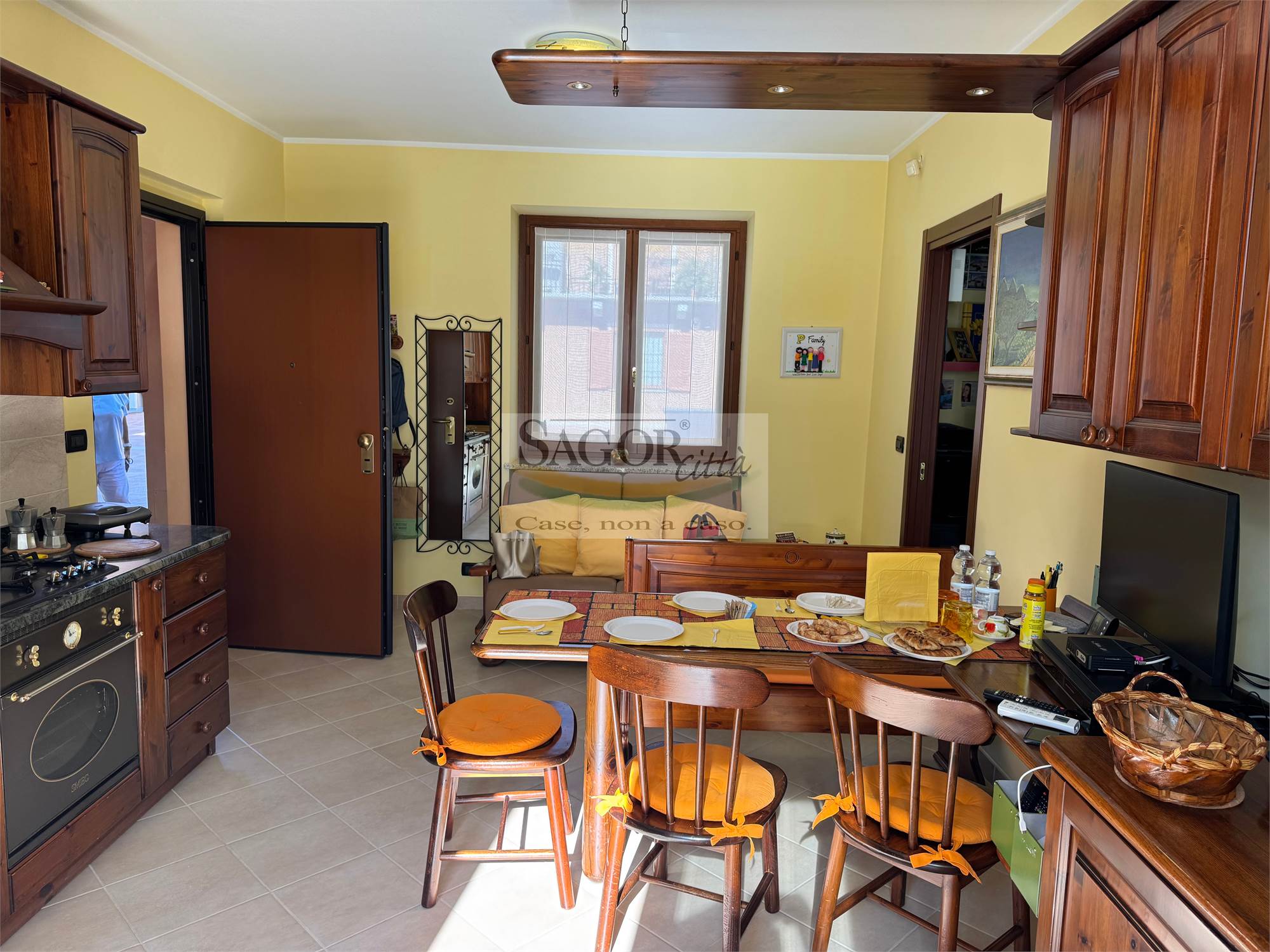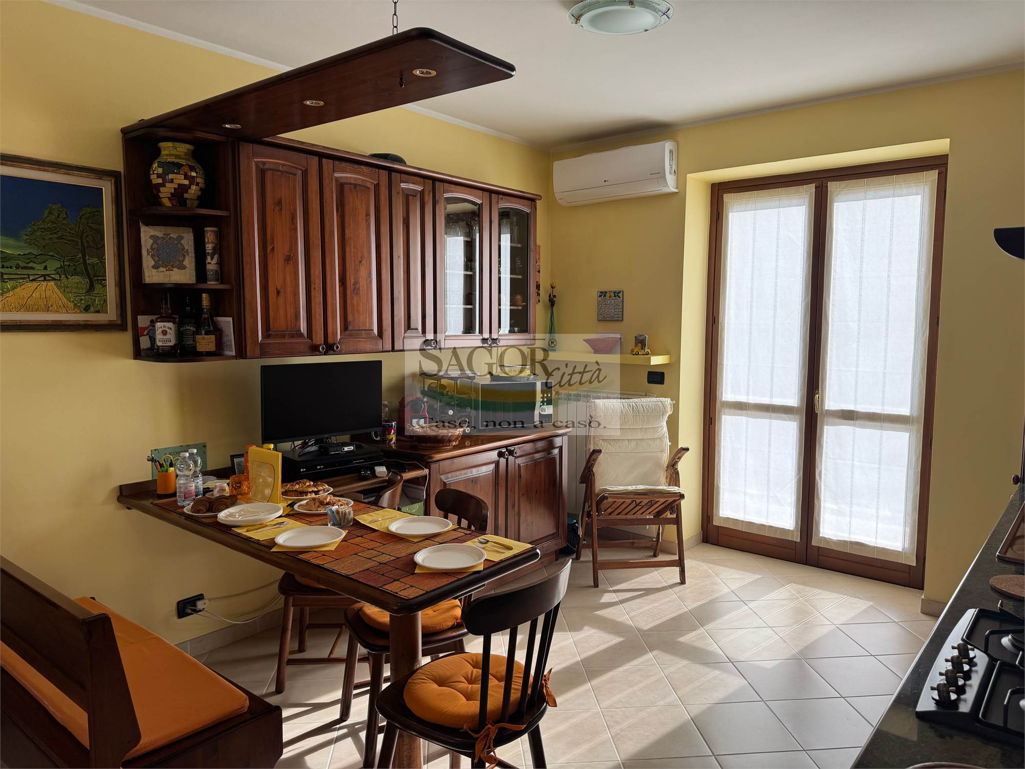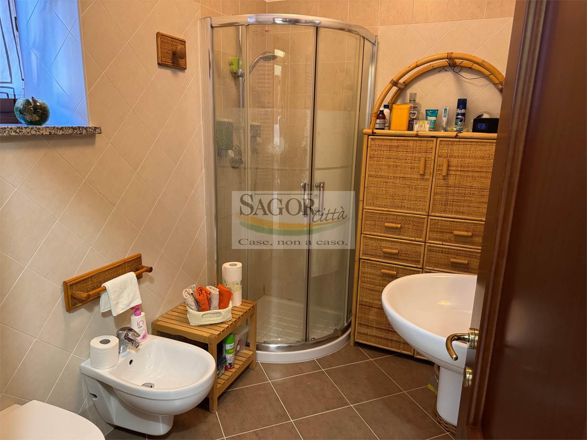 Inoltre al piano seminterrato bella tavernetta -lavanderia, ed un posto auto in garage chiuso e coperto, con prezzo a parte .L appartamento è dotato di aria condizionata , doppi vetri con zanzariere, porta blindata e videocitofono.