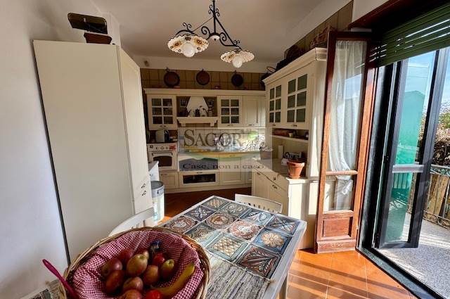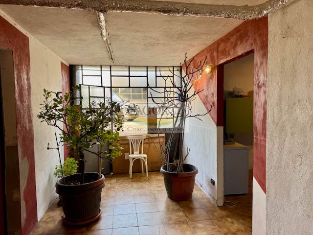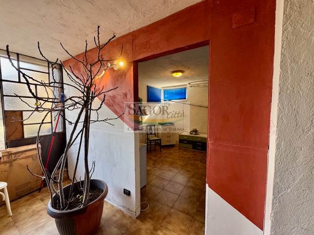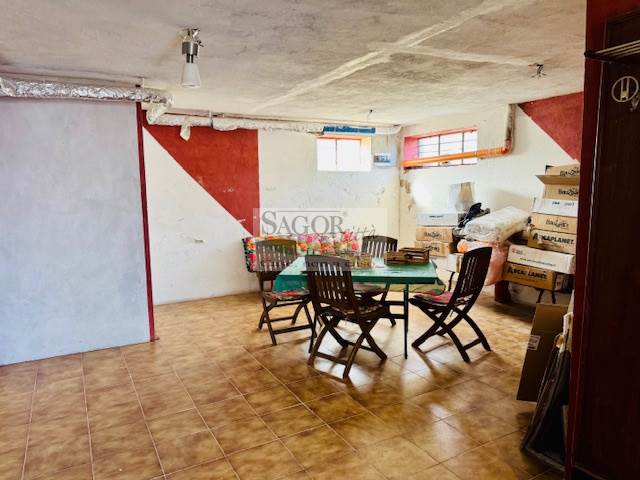 L abitazione si dispone su piano unico composto da ingresso, salone, cucina abitabile , entrambi i vani con affaccio sul terrazzo, piu due camere da letto e un bagno.CollegatI con scala interna ,al piano interrato troviamo una taverna, un locale sgombero, la cantina e la lavanderia. Inoltre un fabbricato adibito a magazzino piu rimessa di 30 mq, cantina e tettoia.