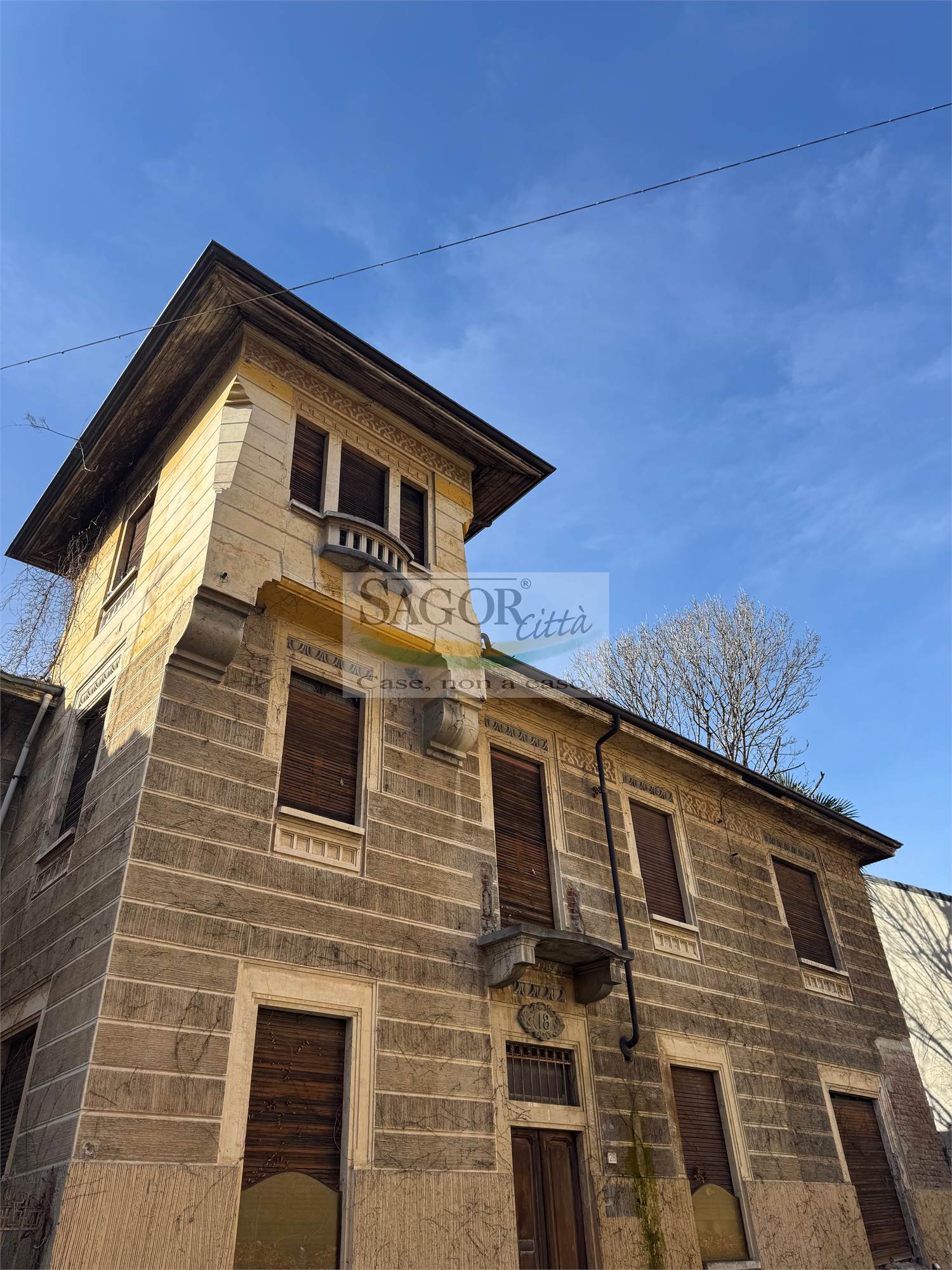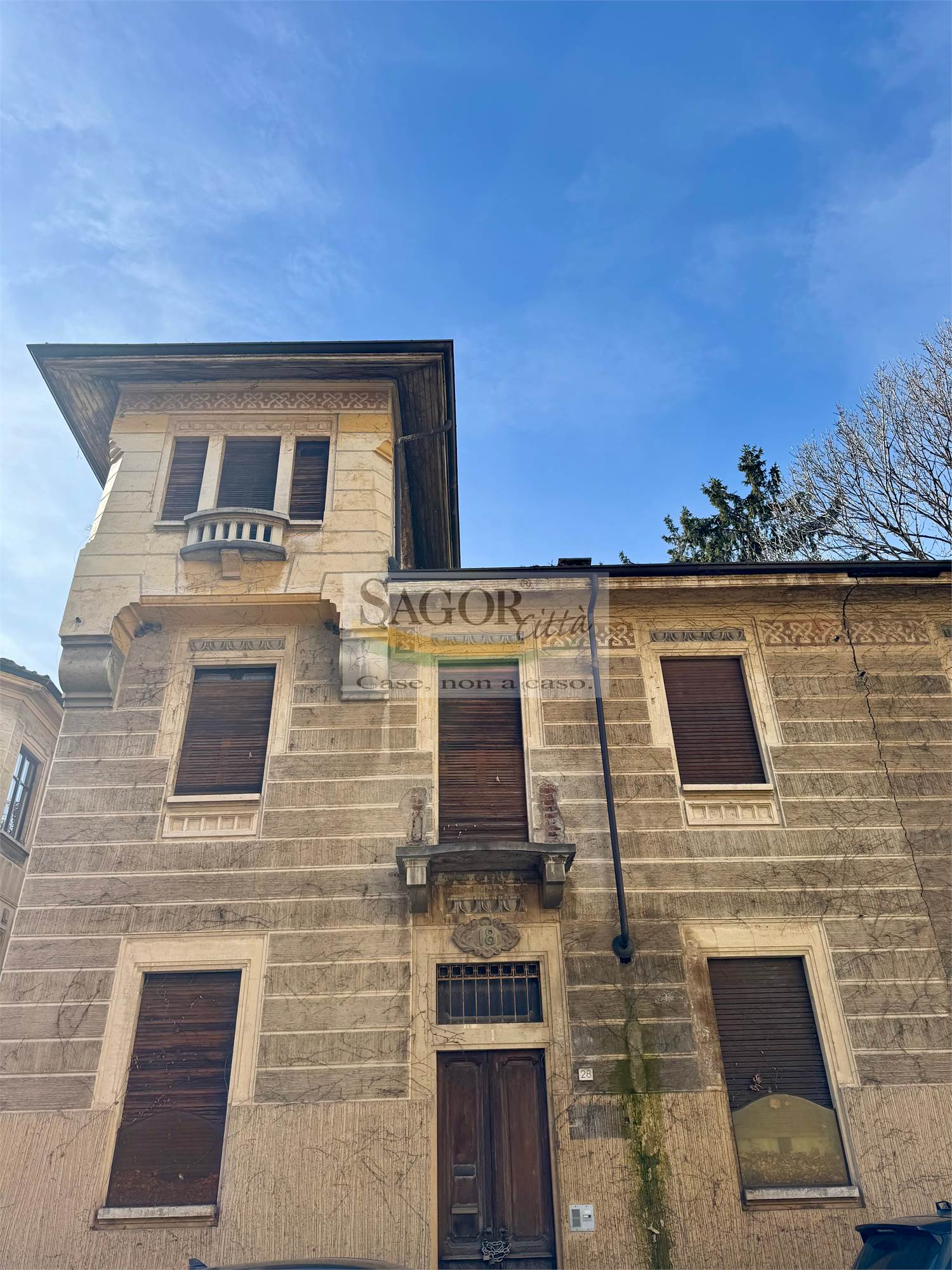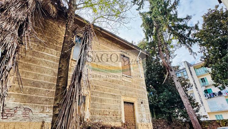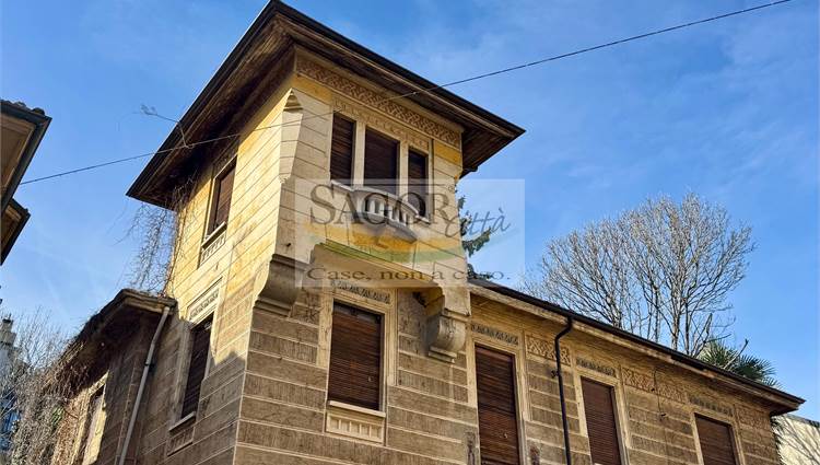 In posizione centralissima si propone esclusiva villa liberty del primo novecento, interamente da ristrutturare con giardino privato e piantumato, e fabbricato adiacente con doppio box ed ampio locale sgombero-deposito sovrastante. La location , unica nel suo genere in citta' ,dispone di un doppio ingresso e si compone di due unita' collegate ma volendo indipendenti, predisponendo la proprieta' in una bifamigliare o grande ed unica abitazione, tutta cantinata con magazzini .
