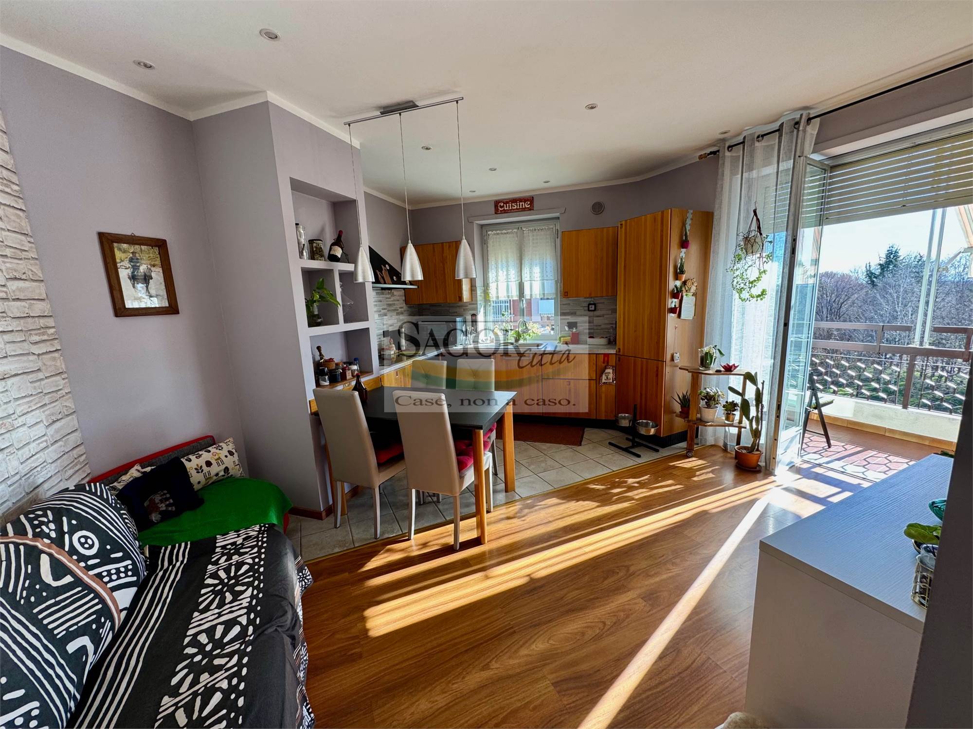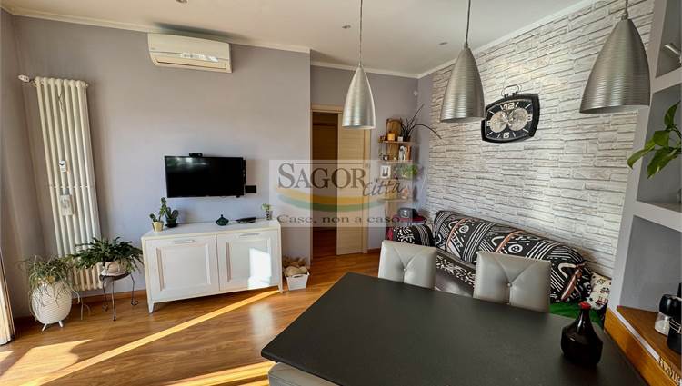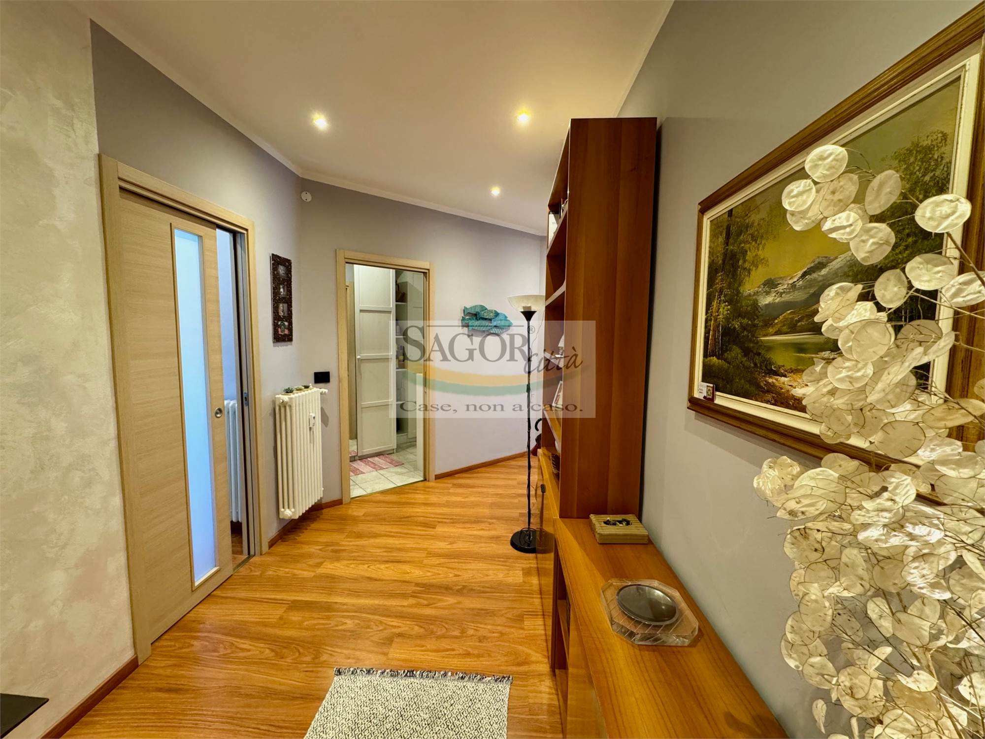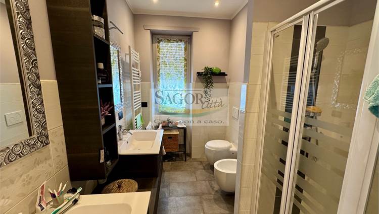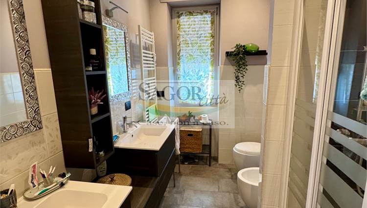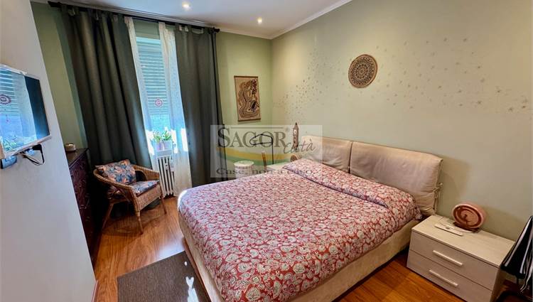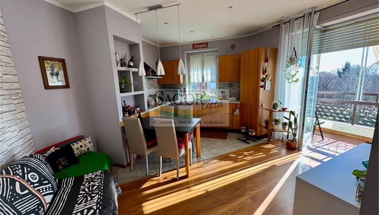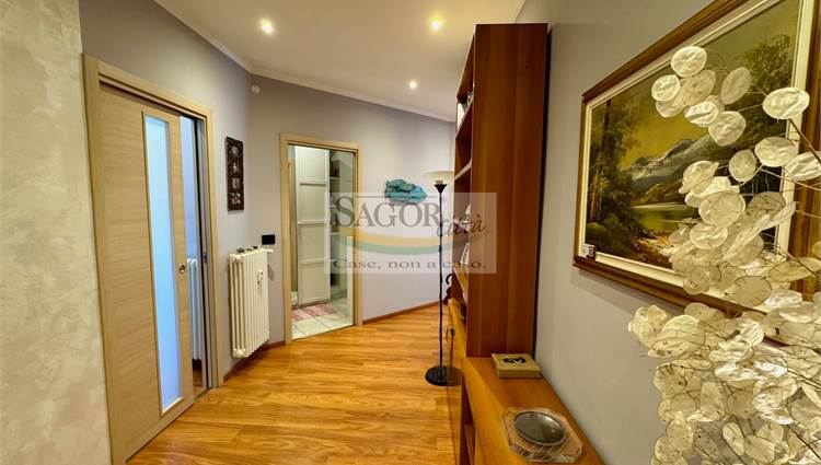 In bel contesto con vista aperta sull'arco alpino si propone appartamento completamente ristrutturato in modo elegante e signorile. Al quarto ed ultimo piano ci accoglie un ampio ingresso valorizzato, così come tutto l'appartamento, dal soffitto ribassato con faretti illuminanti, inoltre un cartongesso divide l atrio creando una cabina armadi ed una lavanderia .