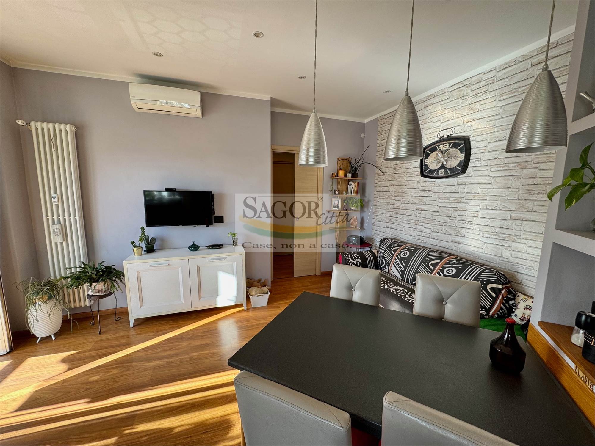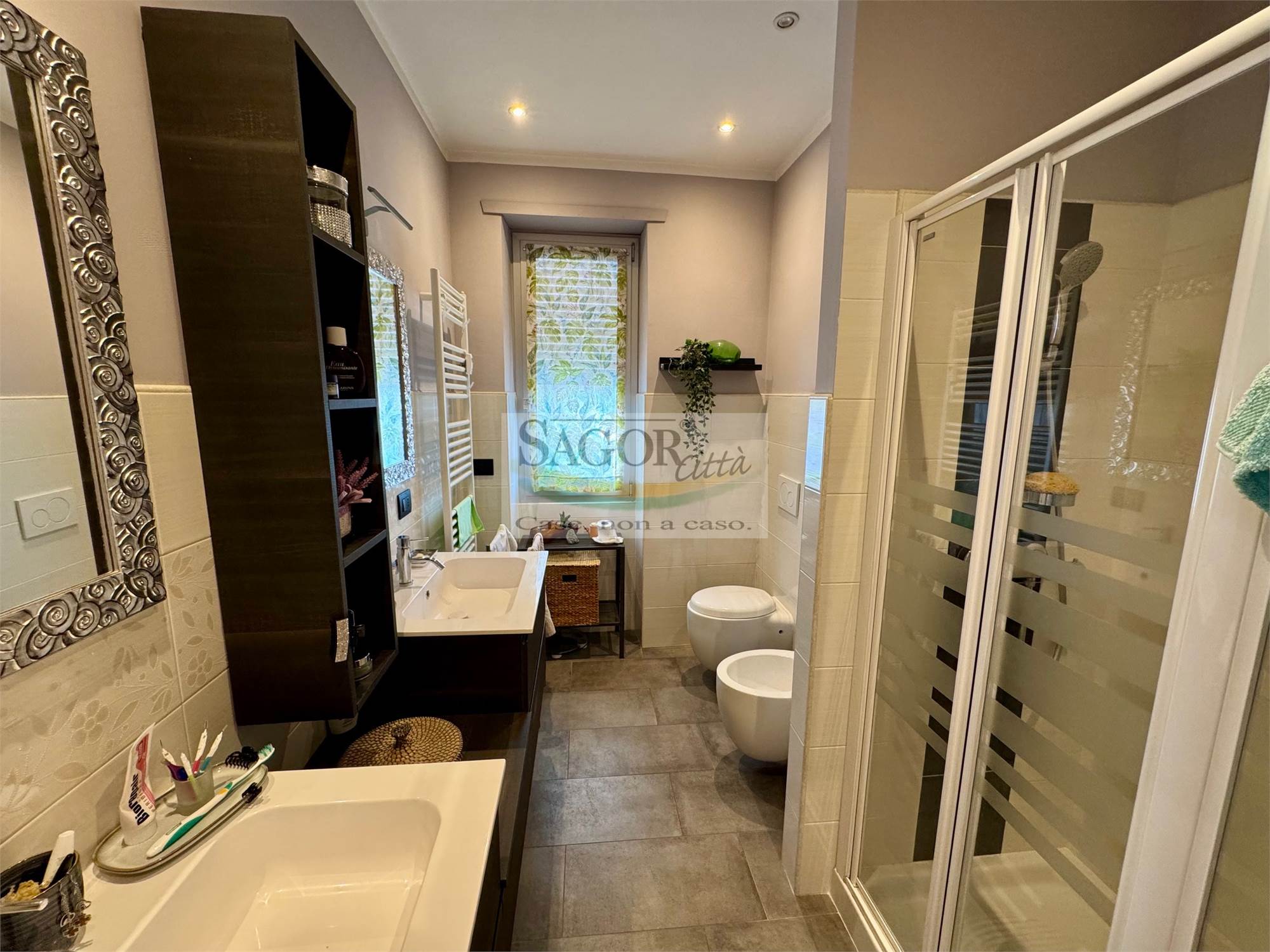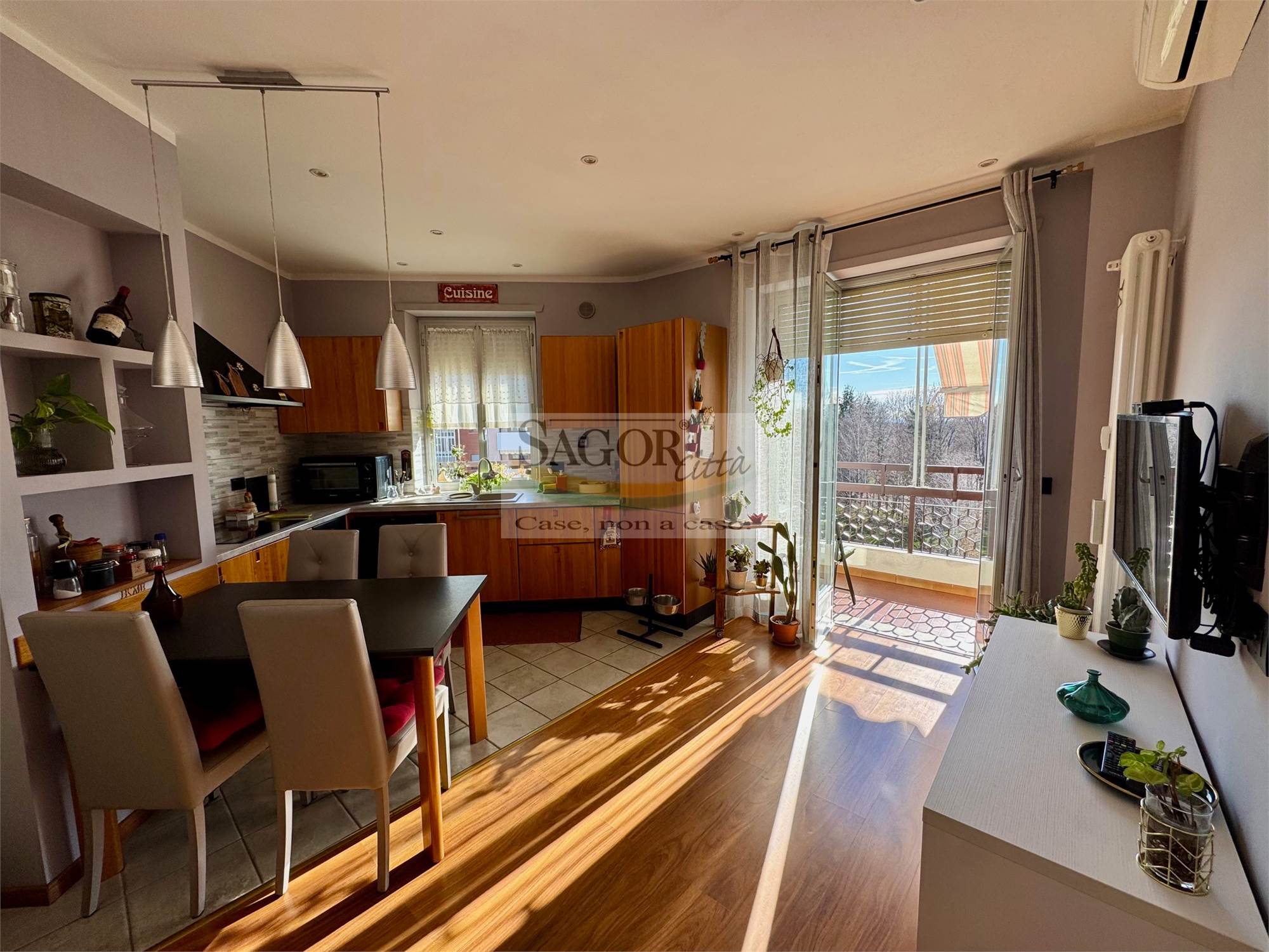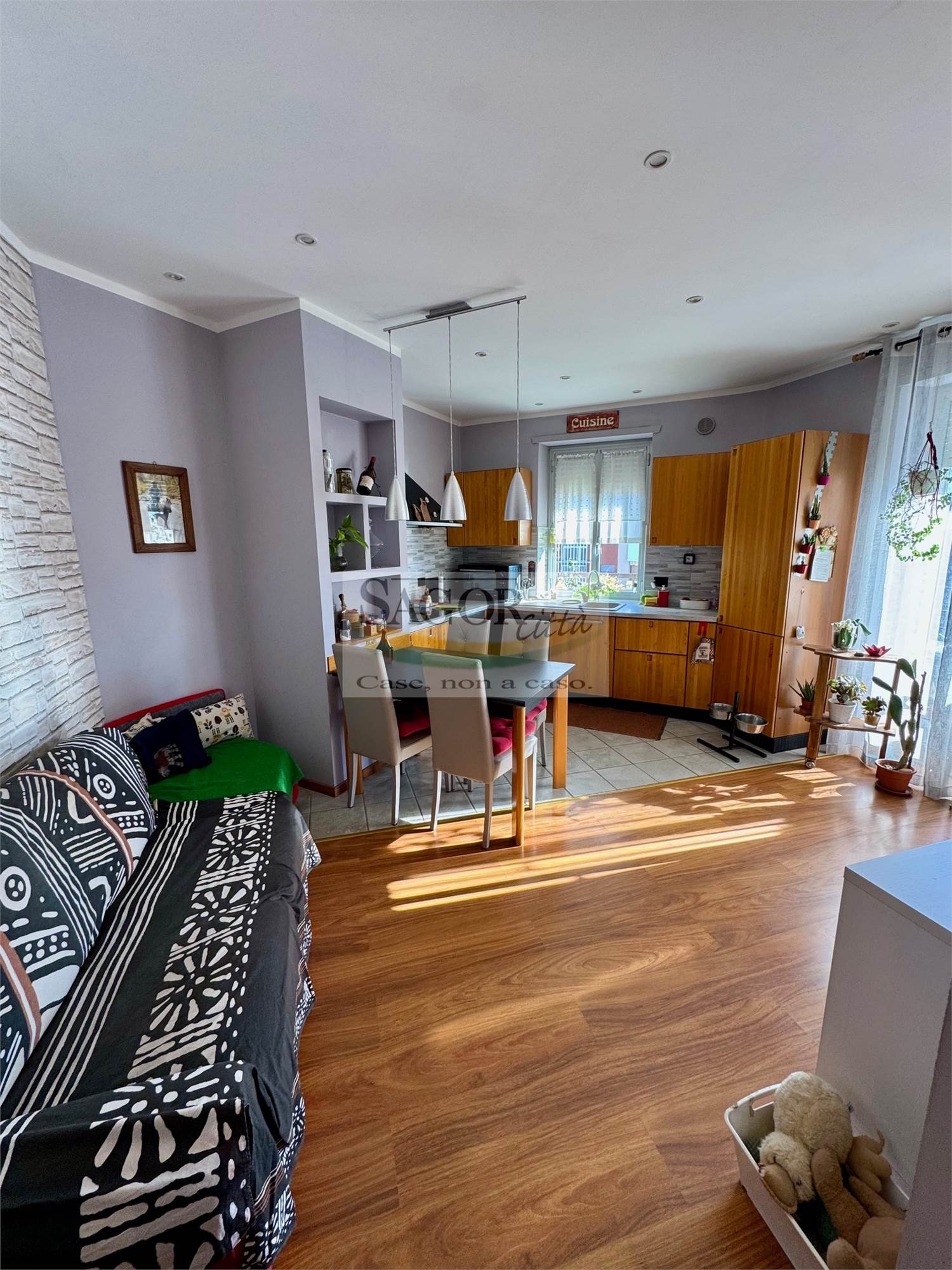 In bel contesto con vista aperta sull'arco alpino si propone appartamento completamente ristrutturato in modo elegante e signorile. Al quarto ed ultimo piano ci accoglie un ampio ingresso valorizzato, così come tutto l'appartamento, dal soffitto ribassato con faretti illuminanti, inoltre un cartongesso divide l atrio creando una cabina armadi ed una lavanderia .