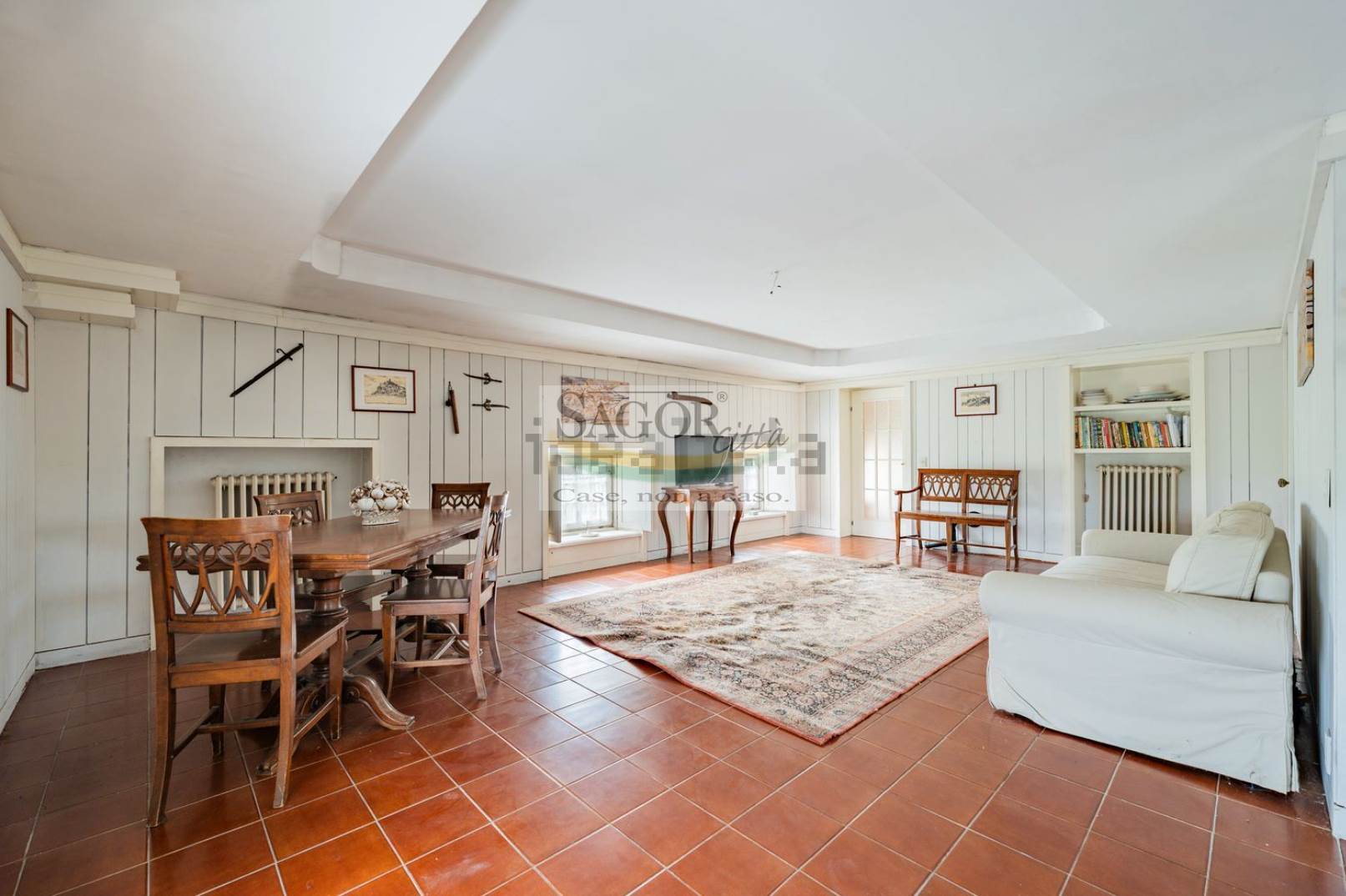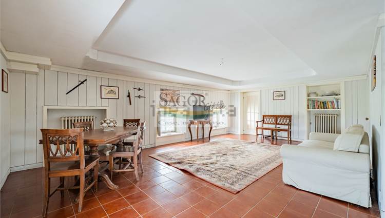 L abitazione si dispone su un ingresso padronale con prestigiosa boiserie in legno ,ampio salone doppio ,sala da pranzo dal quale ricavare la seconda camera da letto, ,cucina abitabile, camera matrimoniale con cabina armadio, bagno ,ripostiglio e disimpegni. La location con elementi di pregio e charme che ospita questo appartamento, è ubicata in posizione comoda ai servizi ed all autostrada , adatta a chi ama il verde della campagna ma a pochi minuti dalla città.Location di rara reperibilita'.
